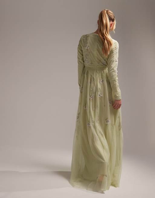 Asos design long sleeve pretty embroidered maxi deals dress